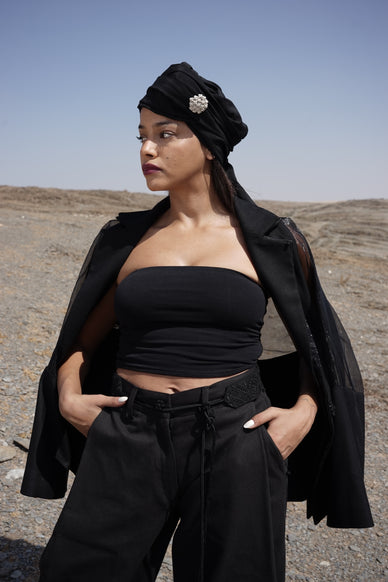 Ce blazer revisite l’élégance classique à travers une coupe fluide en organza, jouant sur la dualité entre force et légèreté.